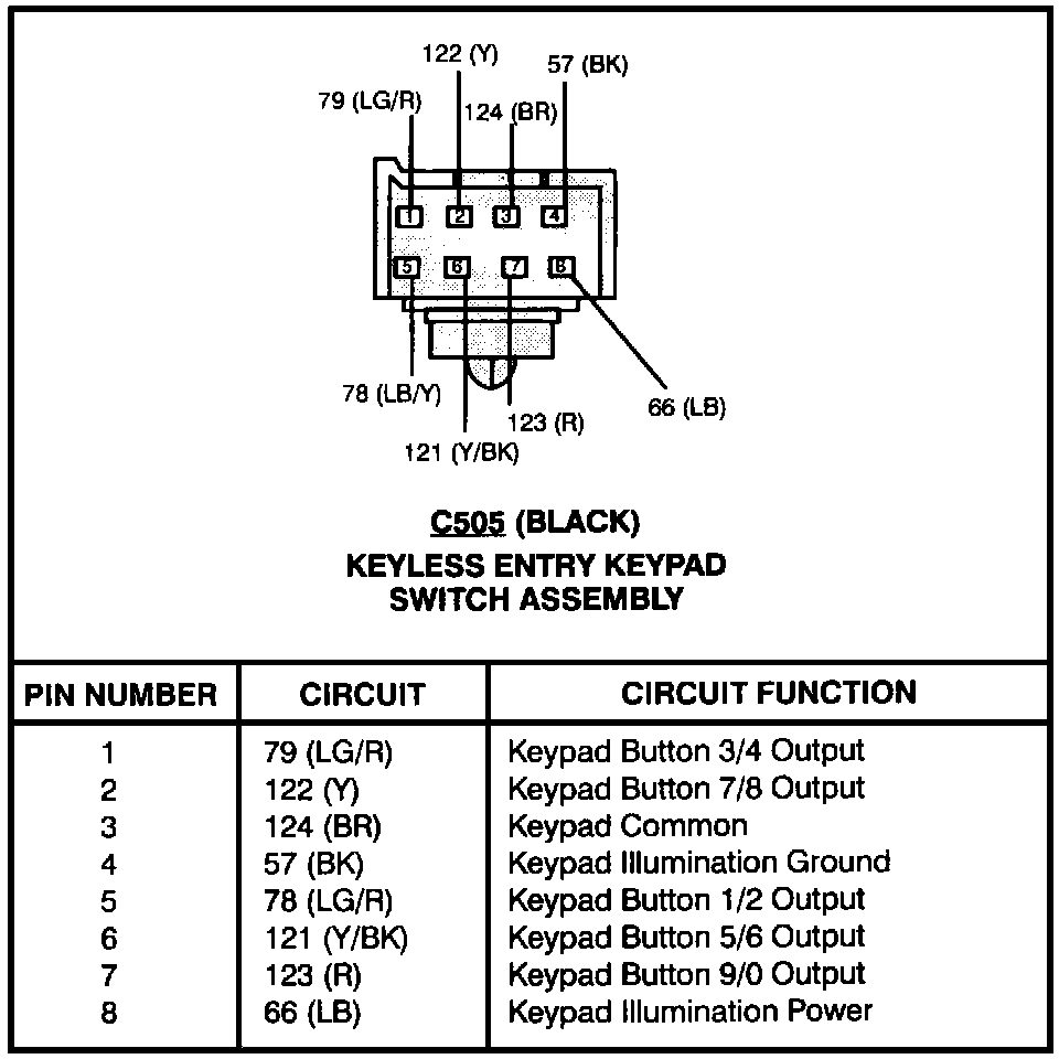 Keyless Entry Keypad Switch Assembly: