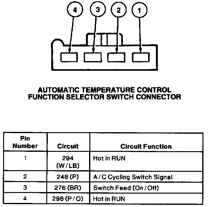 Automatic Temp Control Function Selector Connector:
