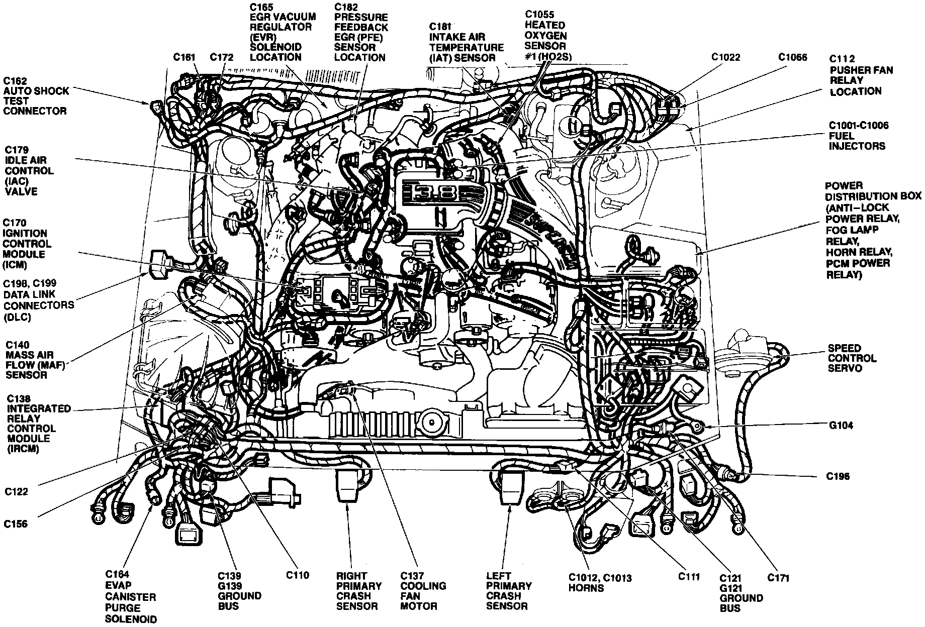 The Integrated Relay Control Module is located at the RH front of the engine compartment, mounted on the upper radiator support.