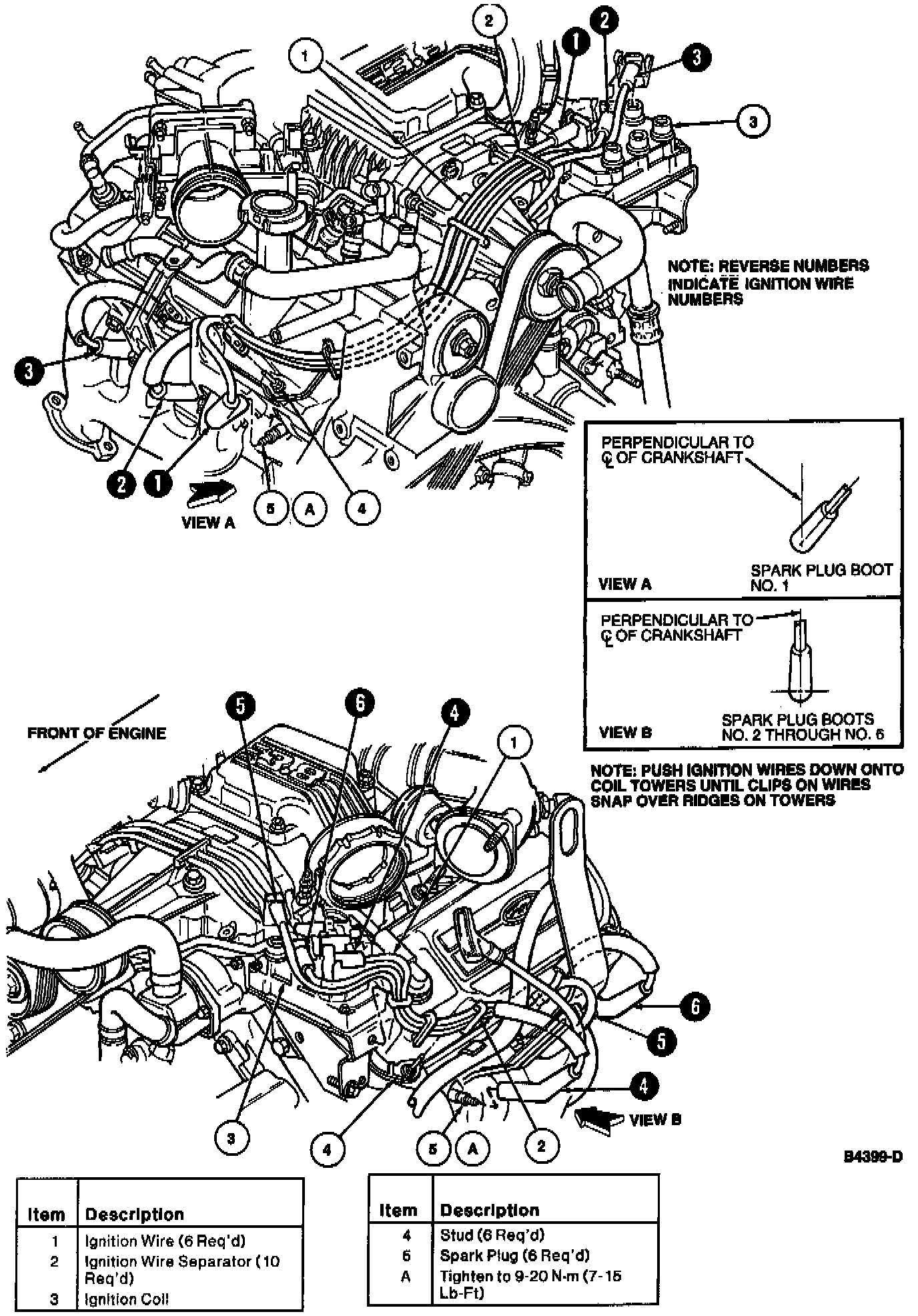 CAUTION: Proper installation of ignition wires is critical to vehicle operation. If any ignition wire is not properly installed on spark plug or ignition coil, both spark plugs connected to that ignition coil may not operate under load.
