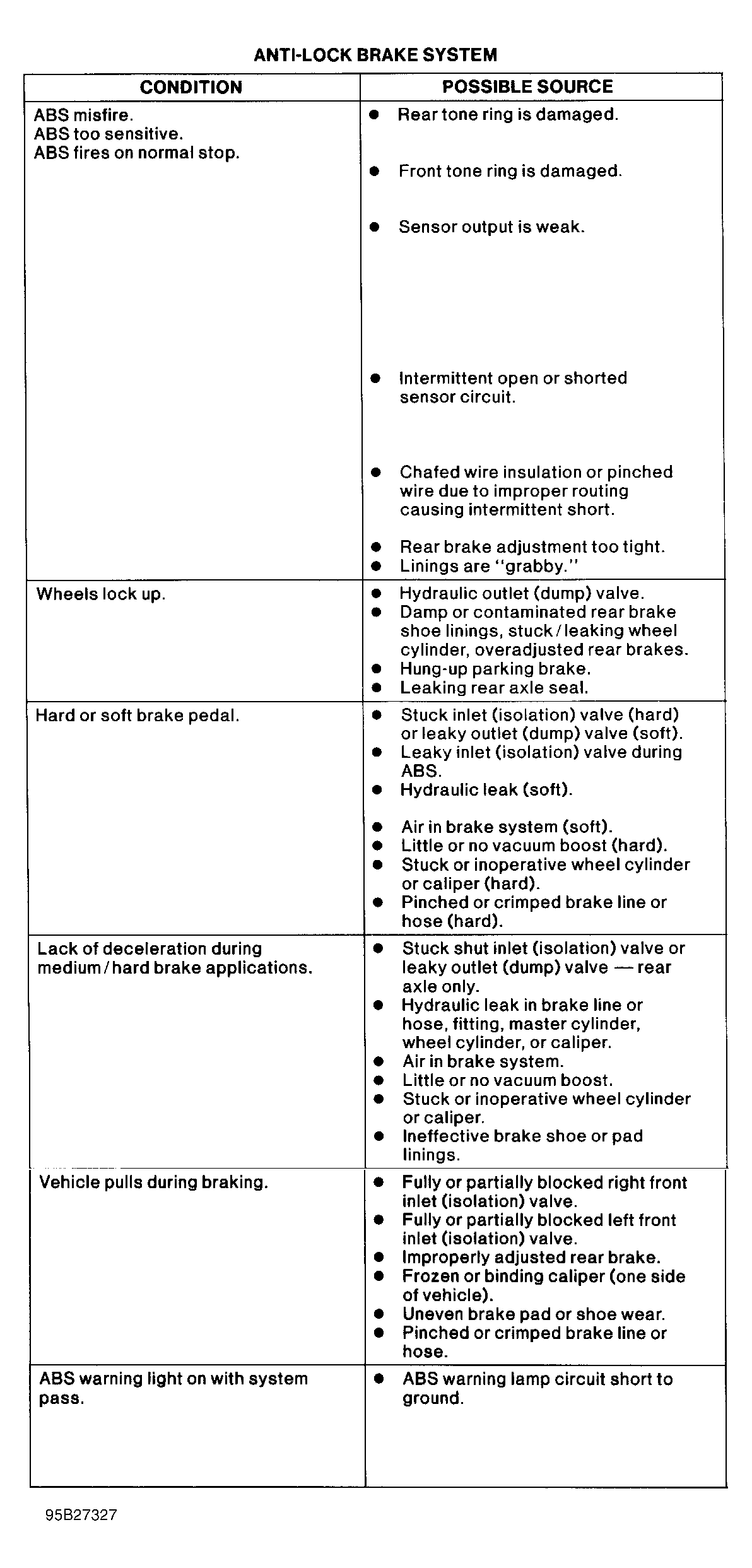 When trouble shooting ABS system, use test procedures in the order they are presented. Using other than recommended procedure could result in wasted time and/or unnecessary replacement of parts. Recommended sequence for diagnosing system is: