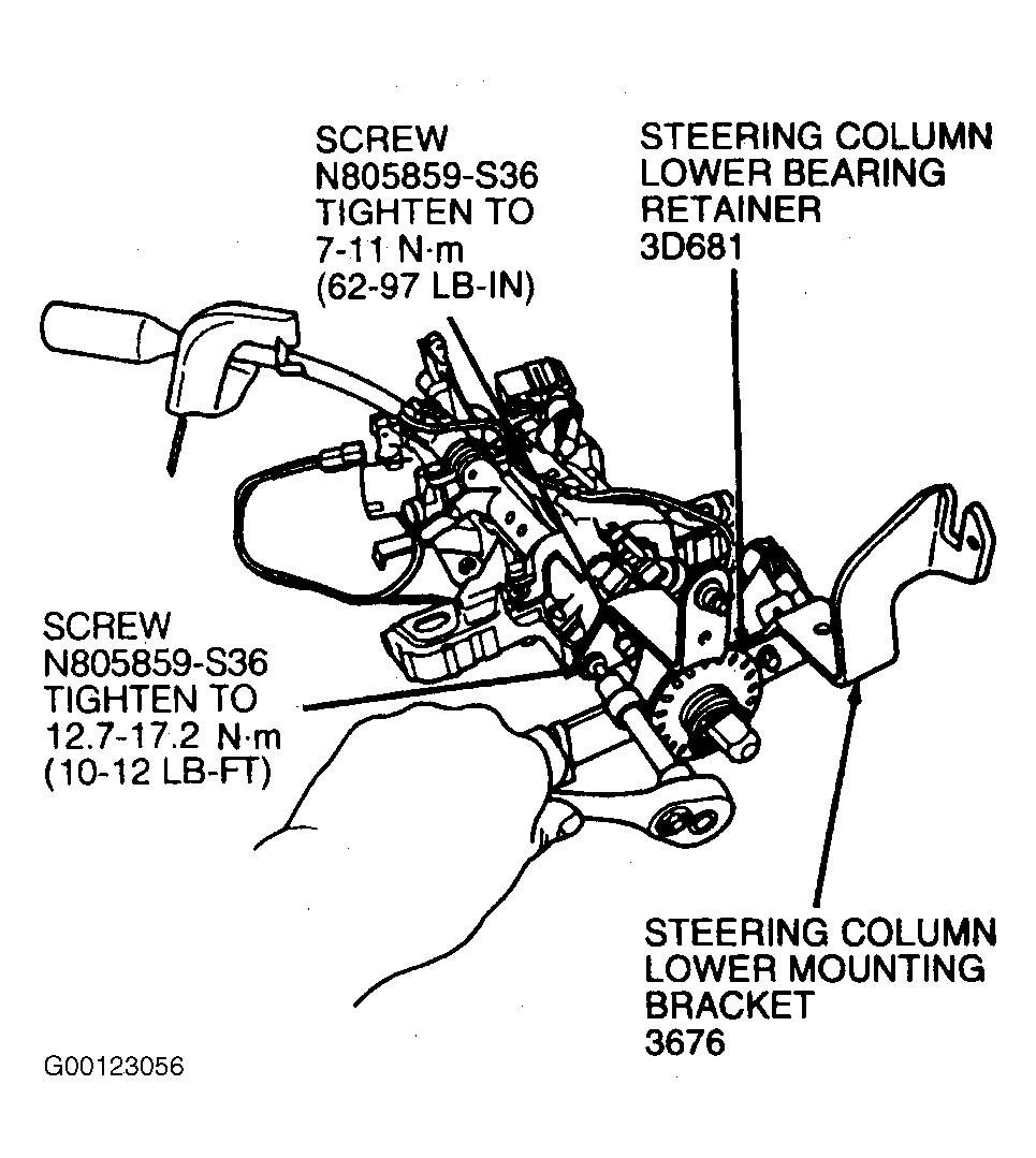 - Install steering column lower bearing retainer and steering column lower mounting bracket. Tighten screws to specification. See TORQUE SPECIFICATIONS . SeeFigure .
