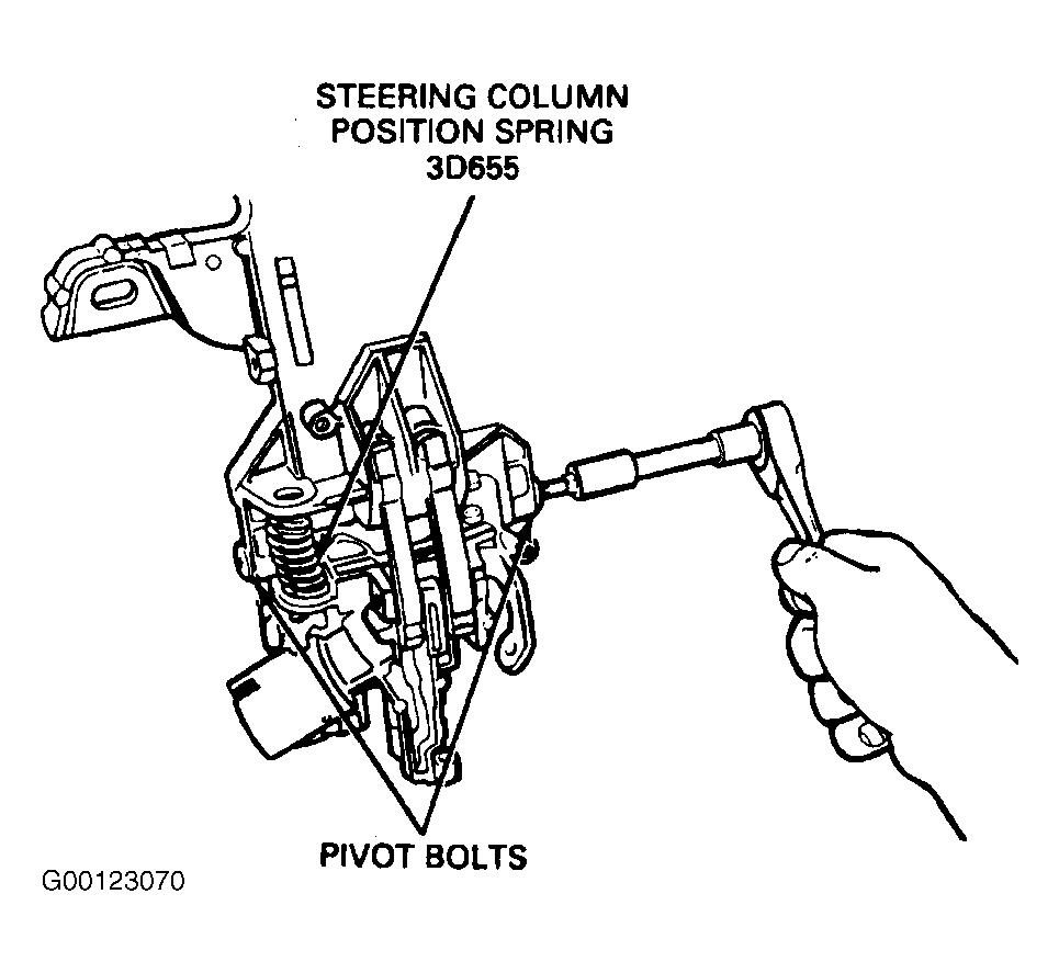 - Position steering column lock spring on steering column tube flange. With assistant, install steering column tube flange and pivot bolts. Tighten to specification. See TORQUE SPECIFICATIONS . See Figure .