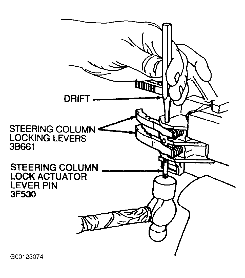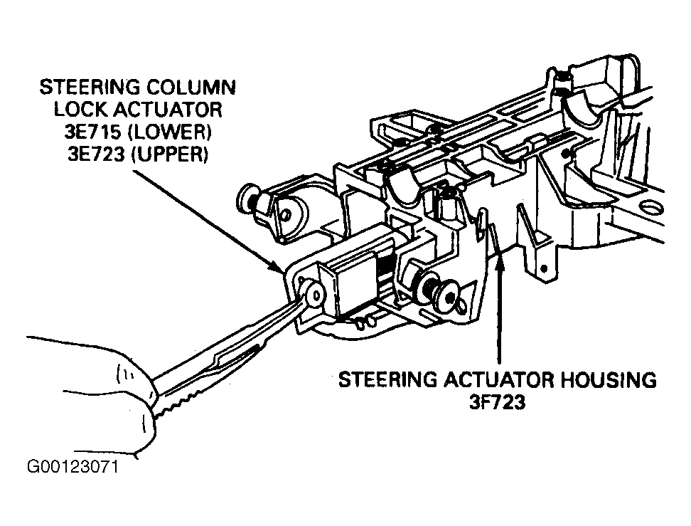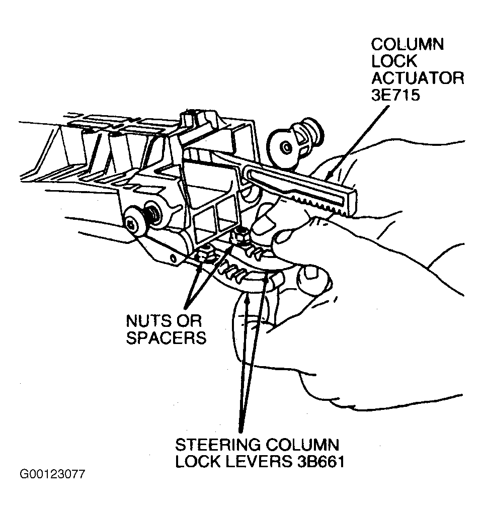 - Lubricate steering column lock actuators with Ignition Lock Grease F0AZ-19584-A (ESA-M1C232-A) or equivalent, prior to installation. Position steering column lock actuators in steering actuator housing. See Figure .