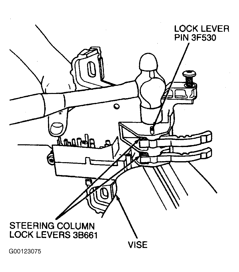 - Support steering actuator housing in a vise and drive lock lever pin flush with steering actuator housing. See Fig 4 .