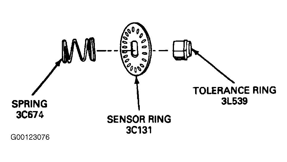- Install sensor ring, tolerance ring and spring to steering shaft. See Fig 1 .