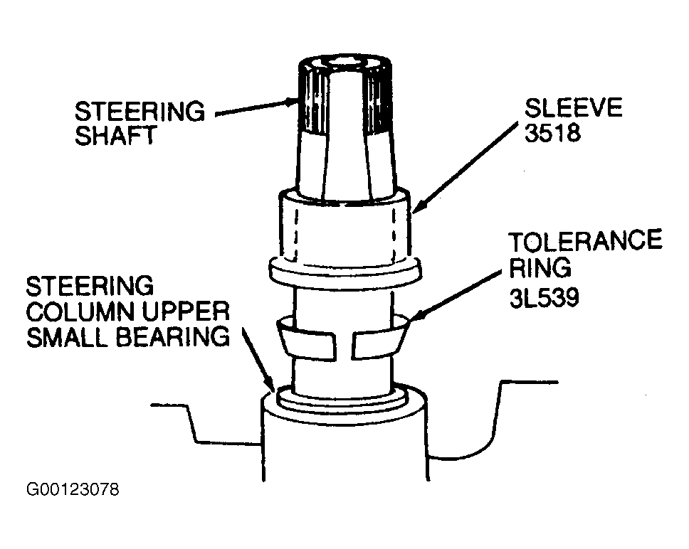 - Install tolerance ring and sleeve over steering shaft to upper bearing. See Fig 6 .