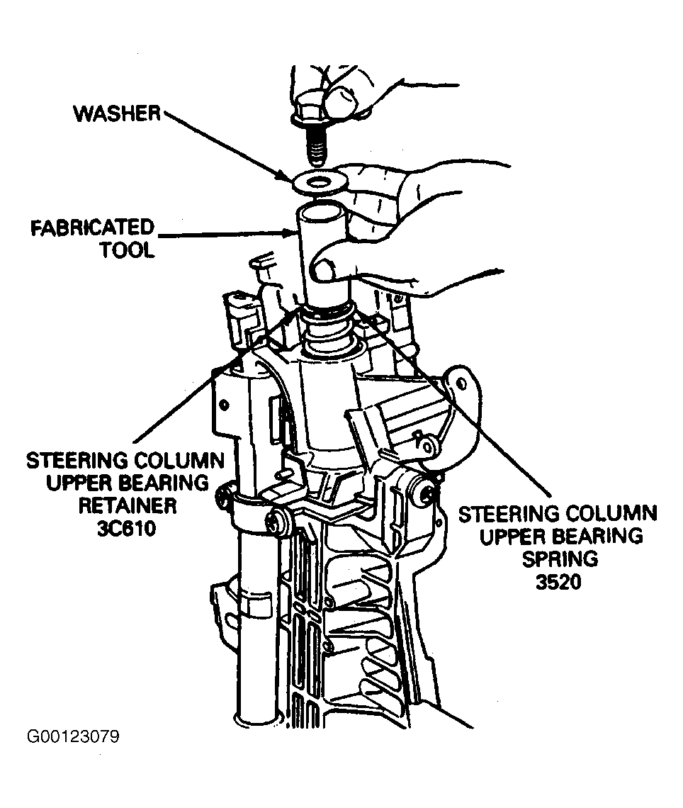 - Install steering column upper bearing spring and new snap ring on top side of steering column upper bearing spring using a 3/4-inch I.D. by 2-1/2 inch long PVC pipe. See Fig 7 .