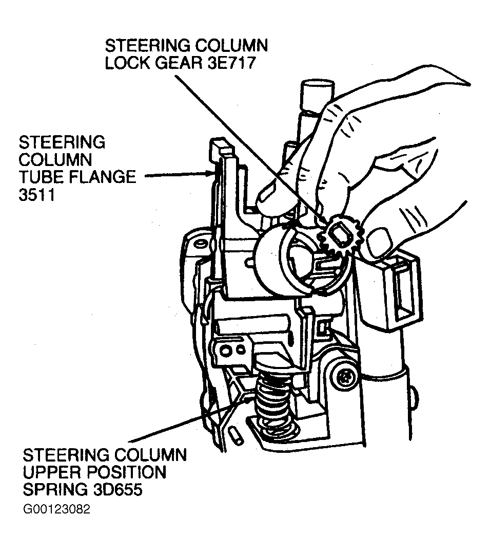 - Install steering column lock gear. Coat gear with Ignition Lock Grease F0AZ-19584-A (ESA-M1C232-A) or equivalent. See Fig 10 .