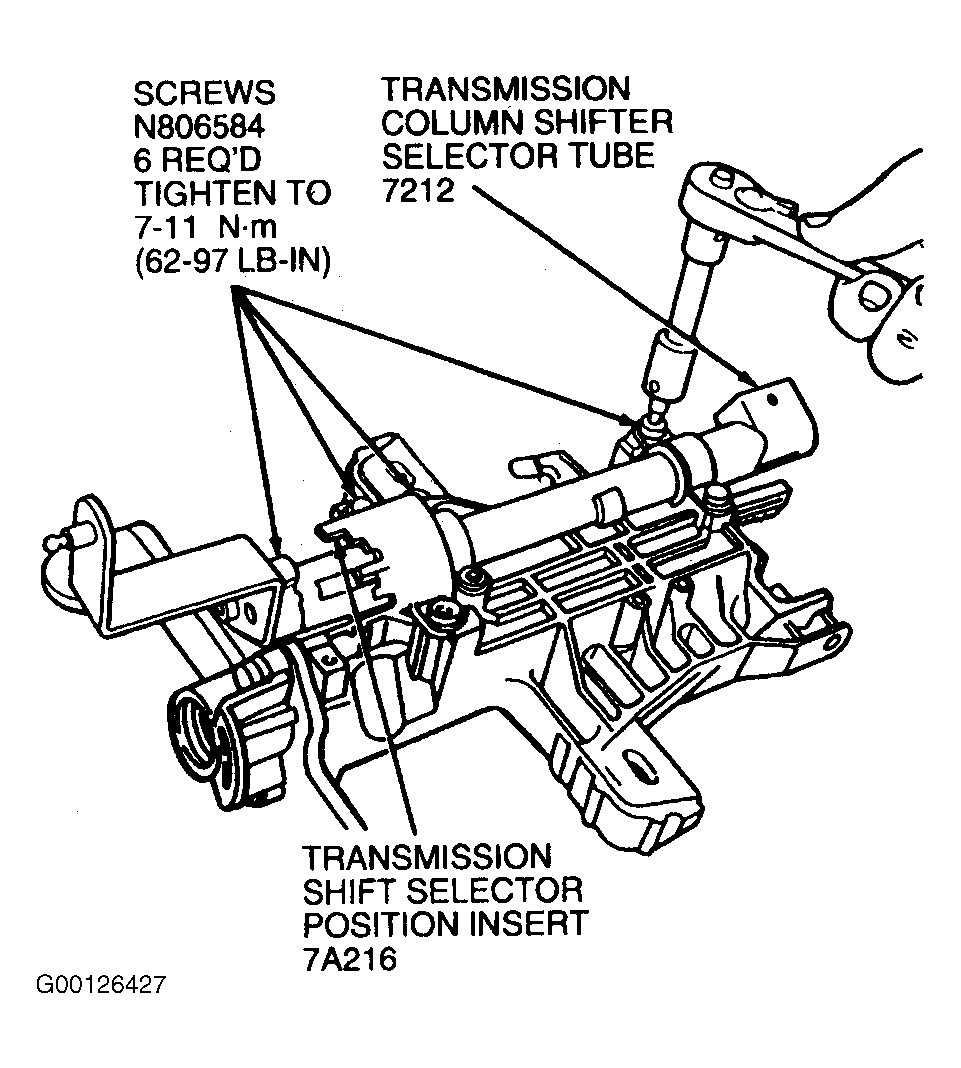 - Install shift control tube assembly (column shift only). See Fig 13 . Coat bushings with Steering Gear Grease C3AZ-19578-A or equivalent grease or equivalent. Tighten screws to specification. See TORQUE SPECIFICATIONS .