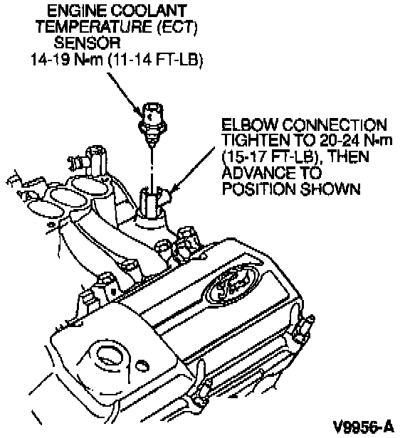 5. To install, reverse removal procedure. Tighten engine coolant temperature sensor to 14-19 Nm (10-14 lb ft). Refill engine cooling system.