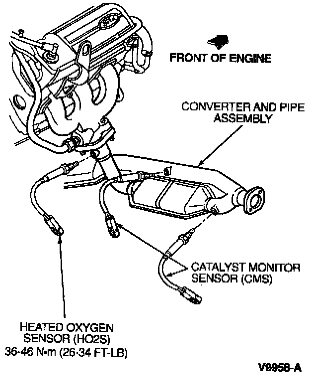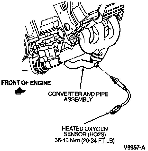 5. To install, reverse removal procedure. Tighten heated oxygen sensors to 36-46 Nm (26-34 lb ft).