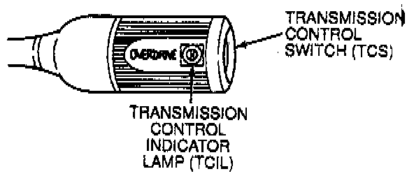 The transmission control switch (TCS) is a momentary contact switch. When this switch is pressed, a signal is sent to the PCM. The PCM then energizes the transmission control indicator lamp (TCIL) and toggles Solenoid 3 (SS3), applying the forward clutch to provide engine braking and canceling fourth gear operation. TCIL will also flash if the EPC circuit is shorted.