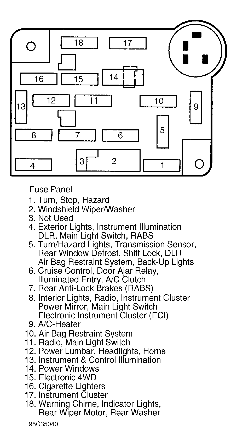 - Remove, check and reinstall battery power fuses No. 8 and 17. See Figure . If fuses are blown, replace with NEW fuse(s). If new fuse blows, determine cause and repair as necessary. With fuses intact, if the speedometer and odometer operate properly, replace instrument cluster. See INSTRUMENT CLUSTER R & I under REMOVAL & INSTALLATION. If speedometer and odometer do not work properly, go to next step.
