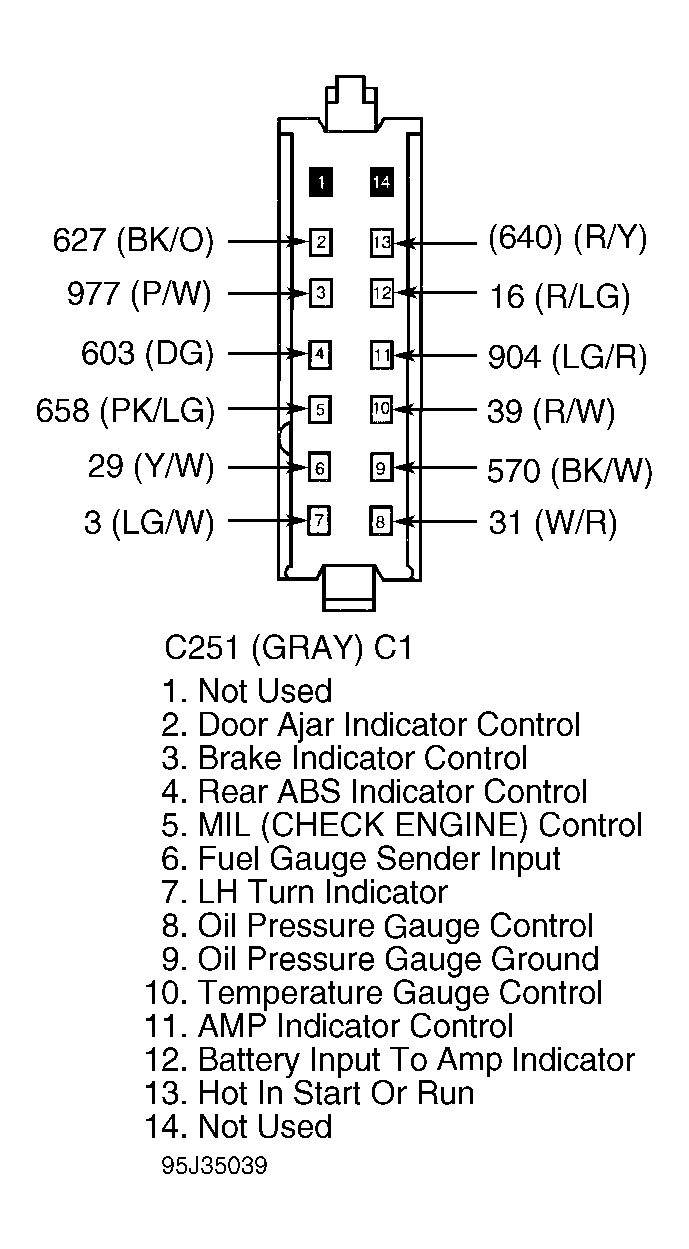 - Probing only wiring harness end of connector, verify battery, ground and ignition on PSOM connector terminals No. 1, 2 and 3 respectively with ignition switch in RUN position. See Figure . If resistance to ground is less than one ohm with terminals in wiring harness connector completely seated in connector and locking tabs, replace instrument cluster. See INSTRUMENT CLUSTER R & I under REMOVAL & INSTALLATION. If resistance is more than one ohm, repair wiring harness and fuses as required and verify operation.