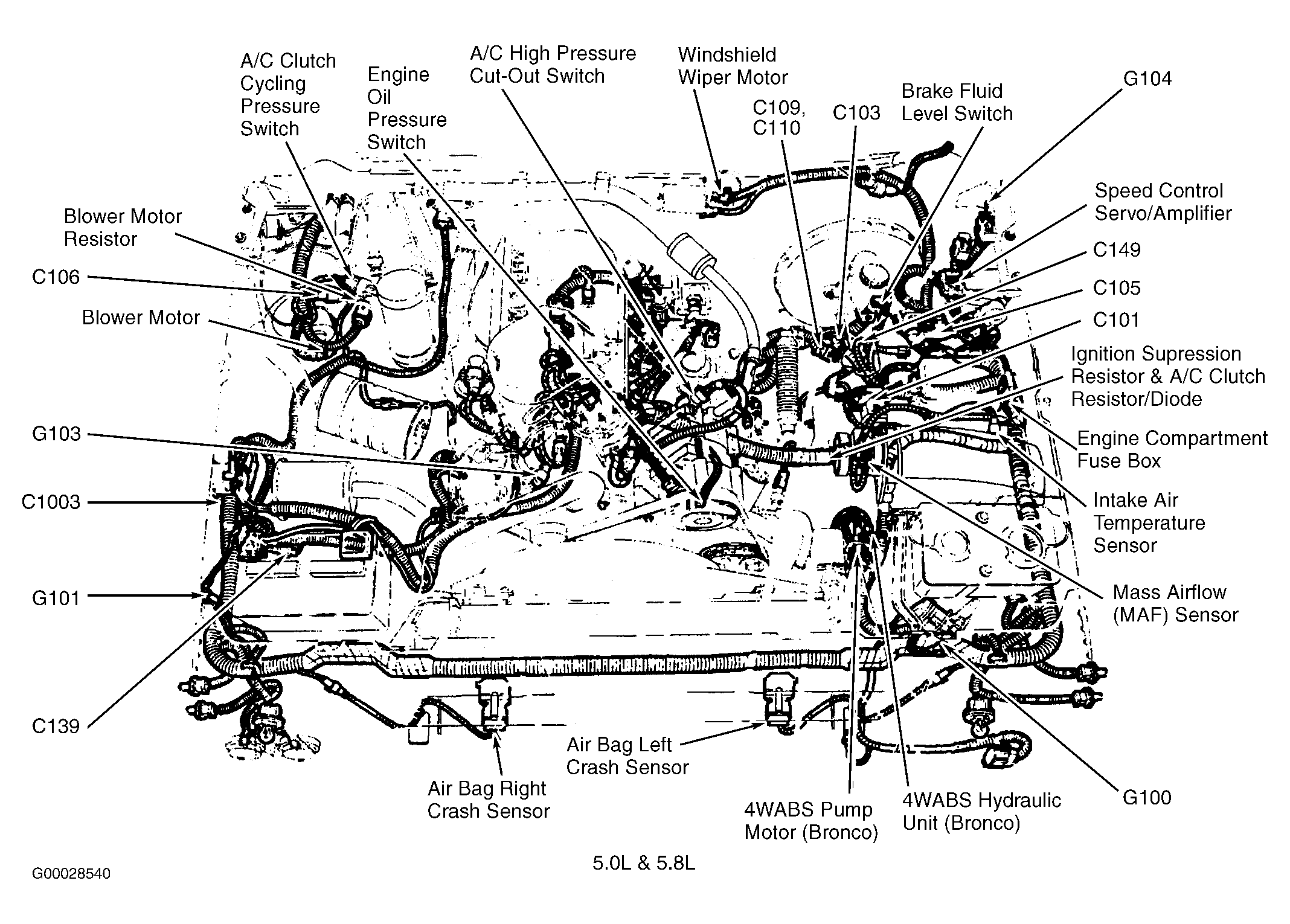 Engine Compartment Fuse Box (5.0L & 5.8L) In engine compartment, on left inner fender panel. See Figure.