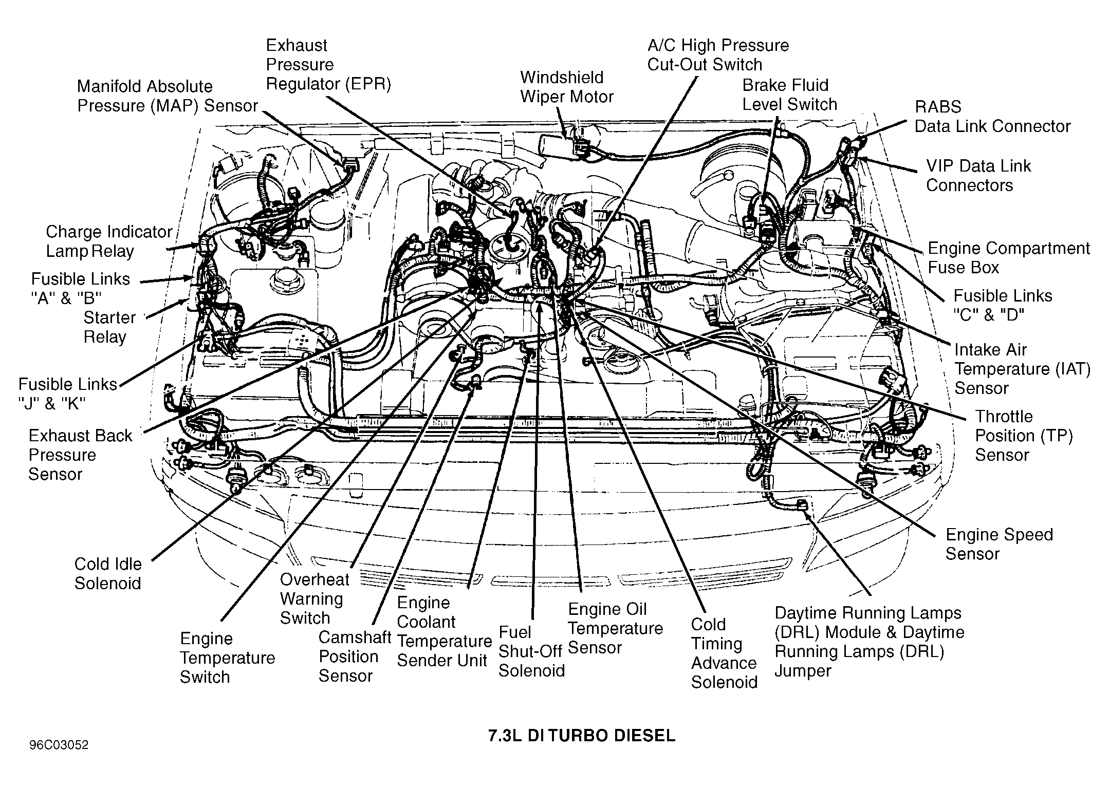 Engine Compartment Fuse Box (7.3L DI Turbo Diesel) In engine compartment, on left inner fender panel. See Figure.