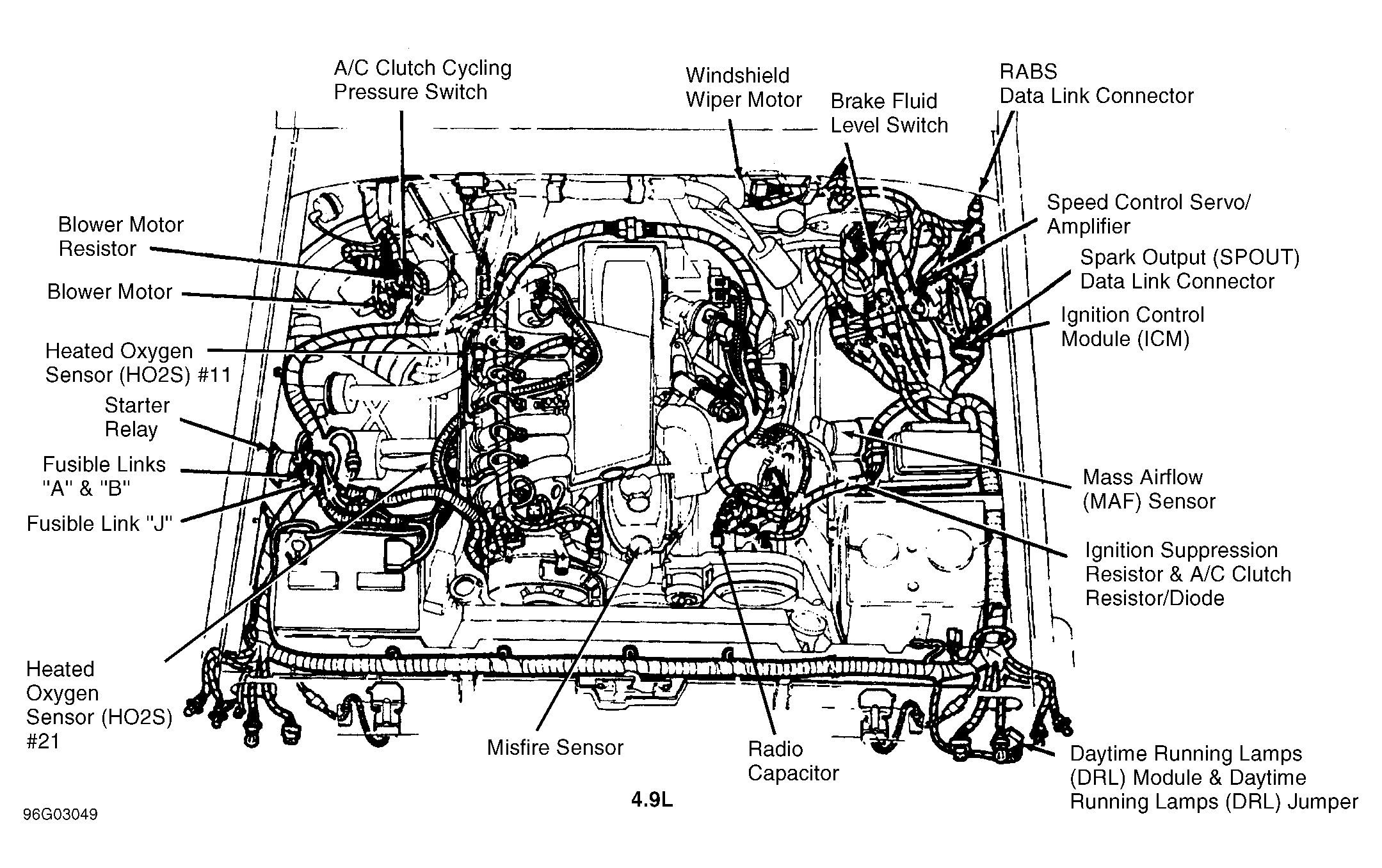 Fusible Link "J" (Gray) (4.9L) At starter relay. See Figure.