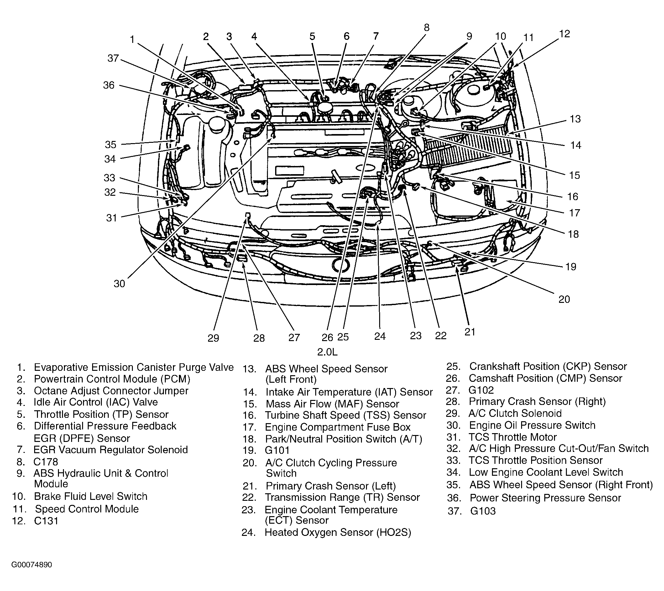 Speed Control Module (2.0L) In left rear of engine compartment, near strut tower. See Figure .