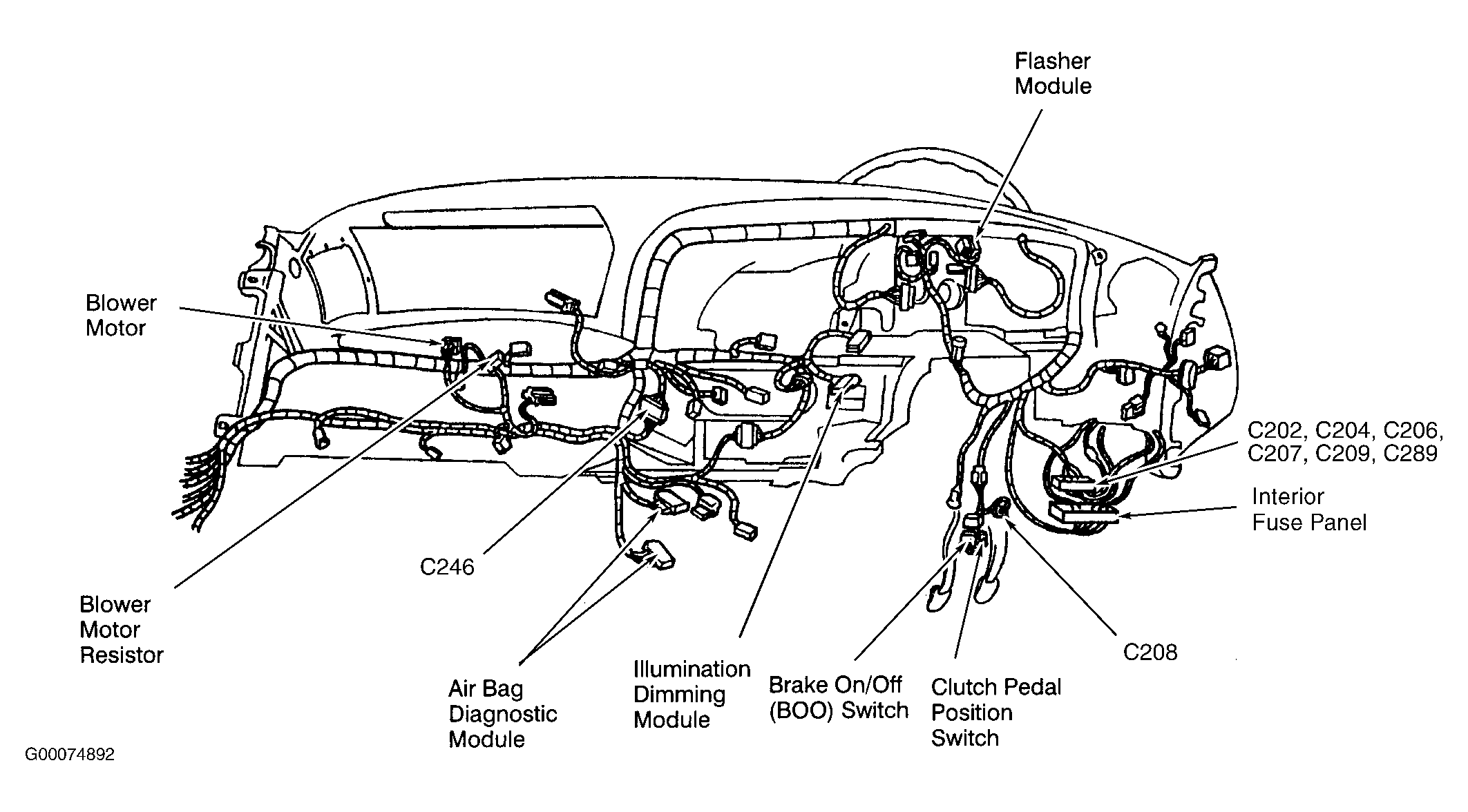 Air Bag Diagnostic Module Behind left side of dash, to right of interior fuse panel. See Figure .