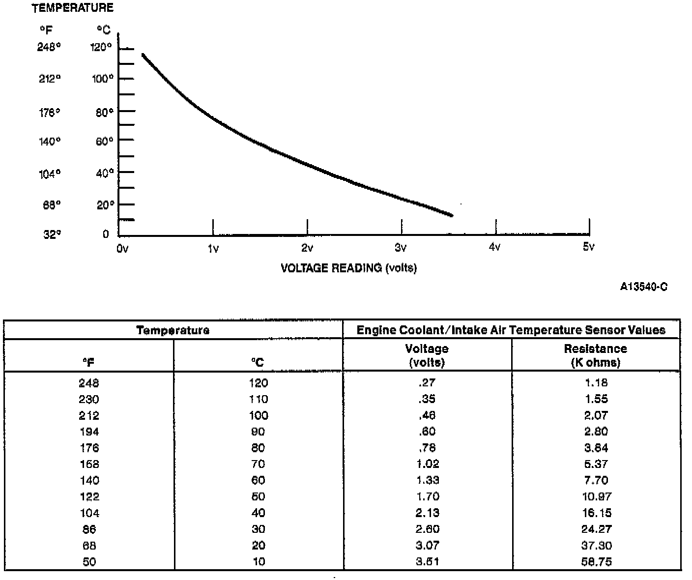 ECT/IAT Sensor Temperature/Voltage Chart:
