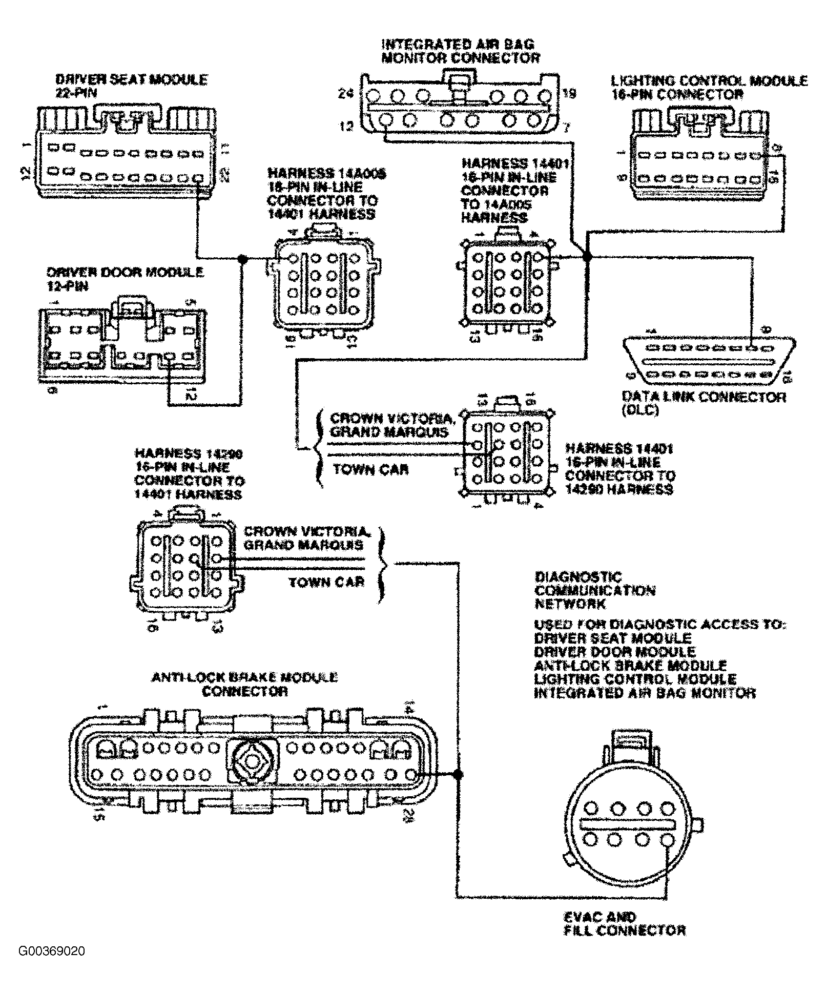 This network consists of a single wire, the Light Blue/White wire. This circuit is used to access certain subsystem modules to perform on-board diagnostics with an off-board tester. The recommended tester is the Rotunda New Generation Star (NGS) Tester (007-00500) or equivalent. The tester accesses the control modules via the Data Link Connector (DLC) located to the right of the steering column beneath the instrument panel. Information on this network is contained in messages. Each module on the network has the ability to send and receive messages to and from the NGS Tester.