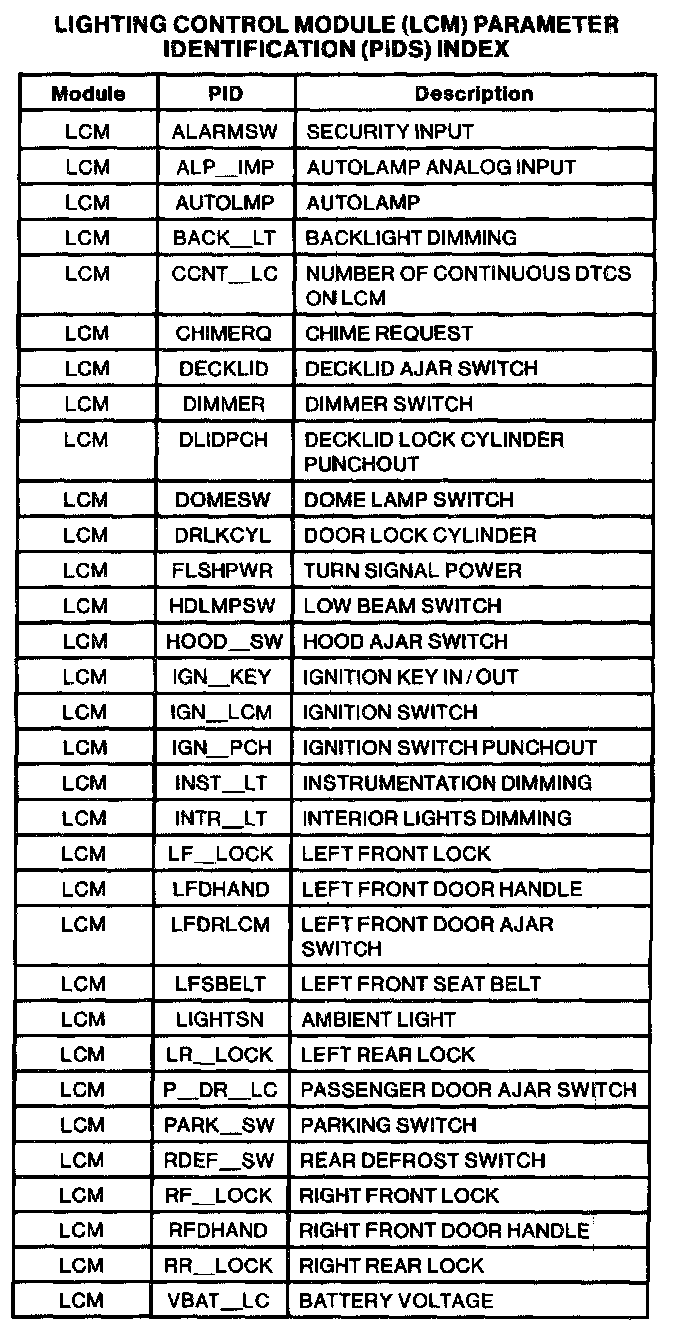 Lighting Control Module Parameter Identification (PID) Index
