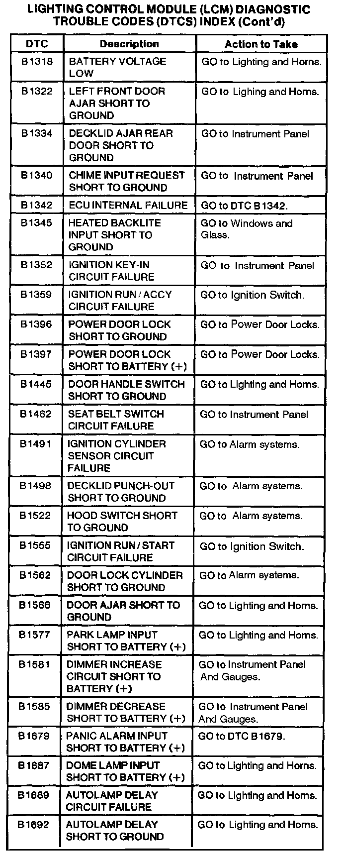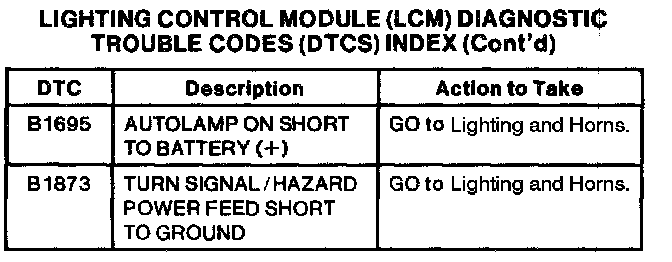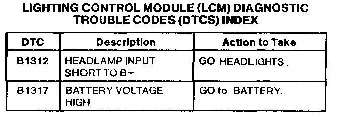 Lighting Control Module Diagnostic Trouble Code (DTC) Index