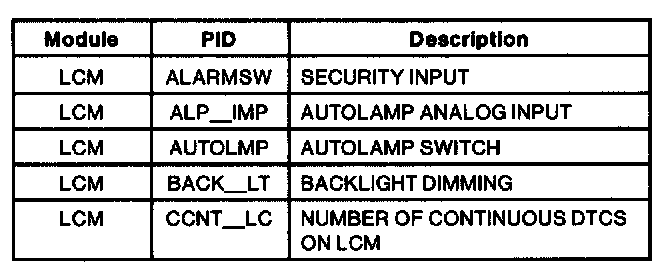 Lighting Control Module PID Index