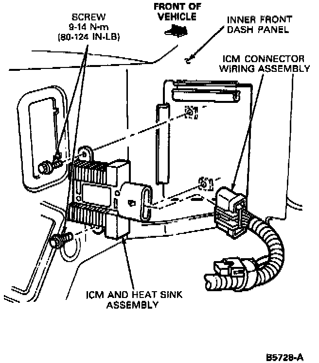 3. Install ICM heat sink assembly on left fender apron using two retaining screws, and tighten to 9-14 N.m (80-124 lb in).