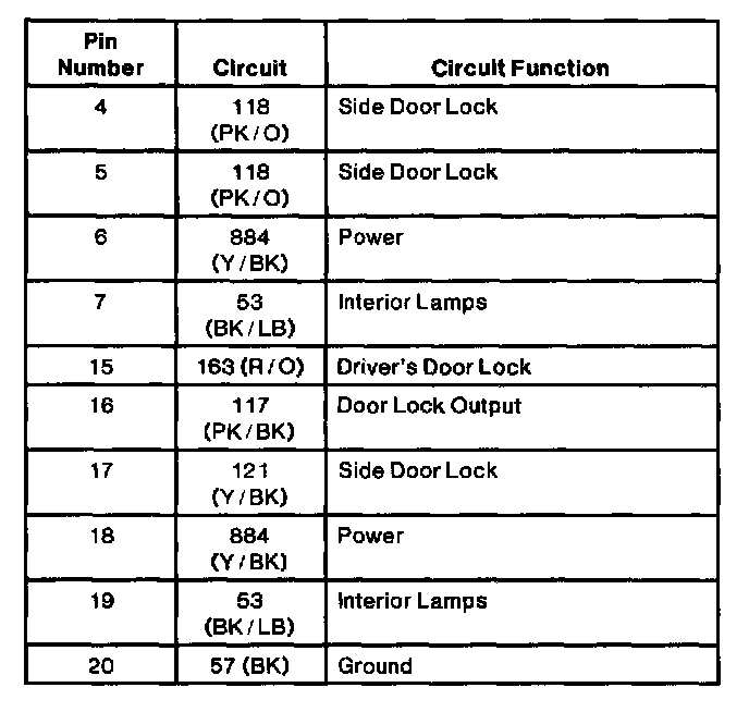 Remote Keyless Entry Module Connector C1