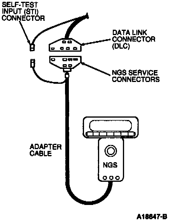 3. Connect the adapter leads to the Data Link Connector (DLC) and Self Test Input (STI) connector.
