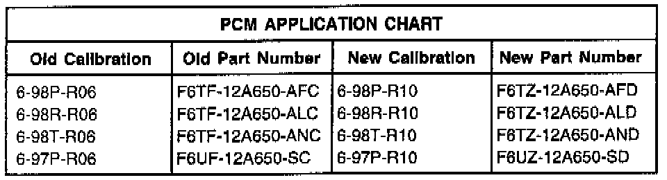 DEALERS WITH SERVICE BAY DIAGNOSTIC SYSTEM (SBDS) ARE REQUIRED TO OBTAIN REGIONAL APPROVAL WHEN IT IS NECESSARY TO REPLACE THE PCM. DEALERS WITHOUT SBDS REFER TO THE APPLICATION CHART FOR THE CORRECT PCM.