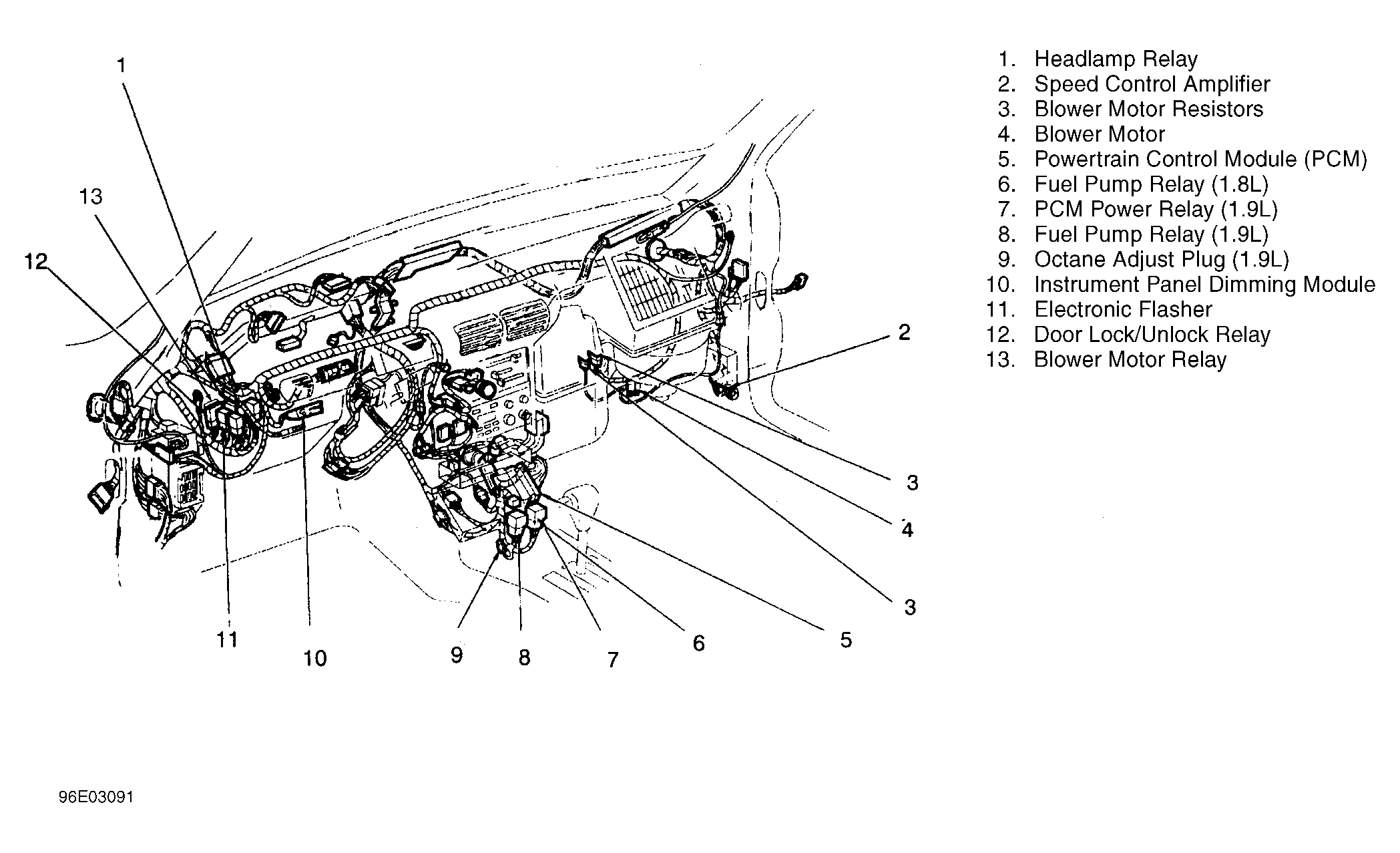 | Powertrain Control Module (PCM) | Below center of dash. See Figure . |