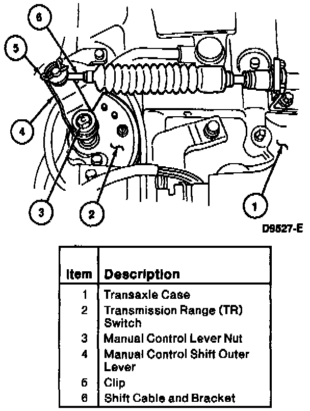 3. Remove the manual control lever nut securing the manual control shift outer lever to the manual control lever.
