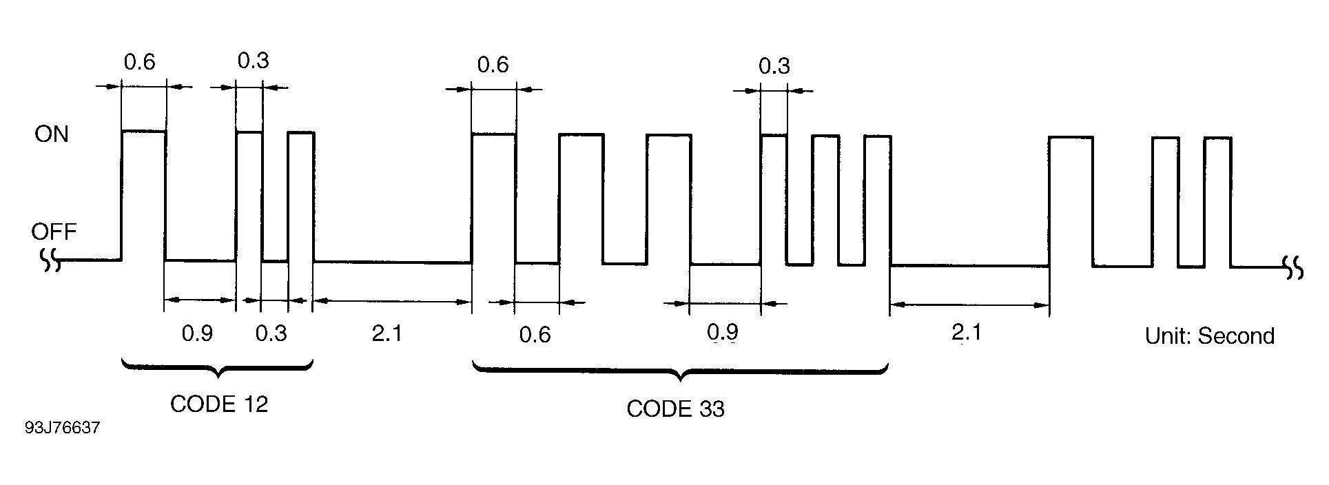 Scan tester, if used, will count pulses and display them as a digital code. If using MIL, trouble codes are displayed as light pulses from CHECK ENGINE light. When using MIL, pay attention to length of pauses in order to read codes correctly. See Figure .