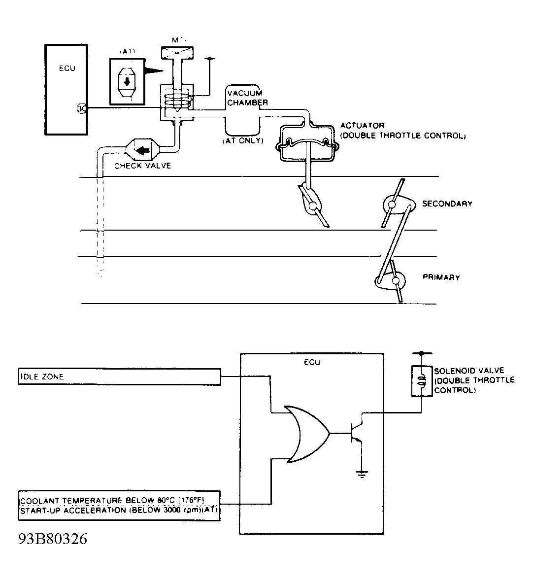 - With engine cold, start engine. Ensure actuator rod is pulled in. See Fig 1 . If rod is not pulled in, check operation of cool ant thermosensor and solenoid valve. Also check and repair any vacuum leaks. Apply vacuum to double throttle actuator. If rod does not pull in, check for vacuum leaks. If no vacuum leaks exist, replace double throttle actuator.