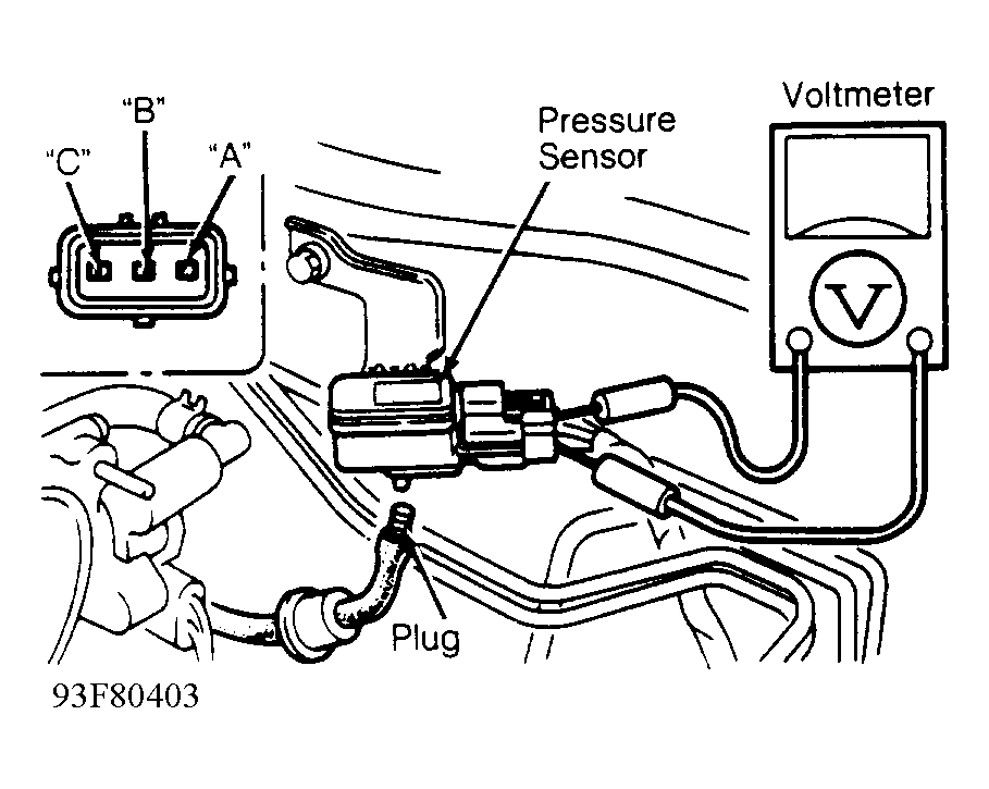 - Warm engine to operating temperature. Turn all accessories off. Connect positive lead of voltmeter to MAP sensor terminal "A" and negative lead to terminal "B". See Fig 1 .
