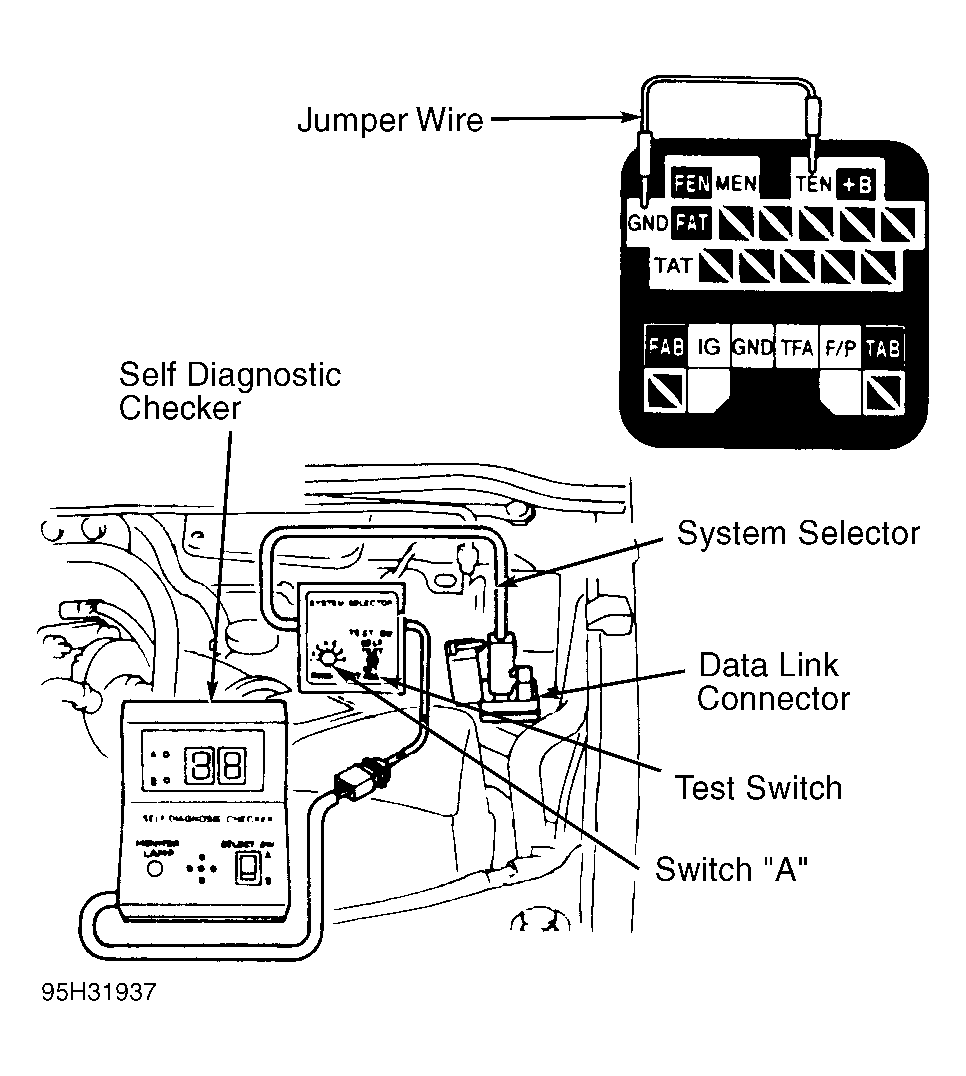 - If system selector is not available, connect a jumper wire between terminals TEN and GND of data link connector. See Fig 1 . Observe Malfunction Indicator Light (MIL). Note trouble codes. Check TROUBLE CODE IDENTIFICATION chart for possible cause.