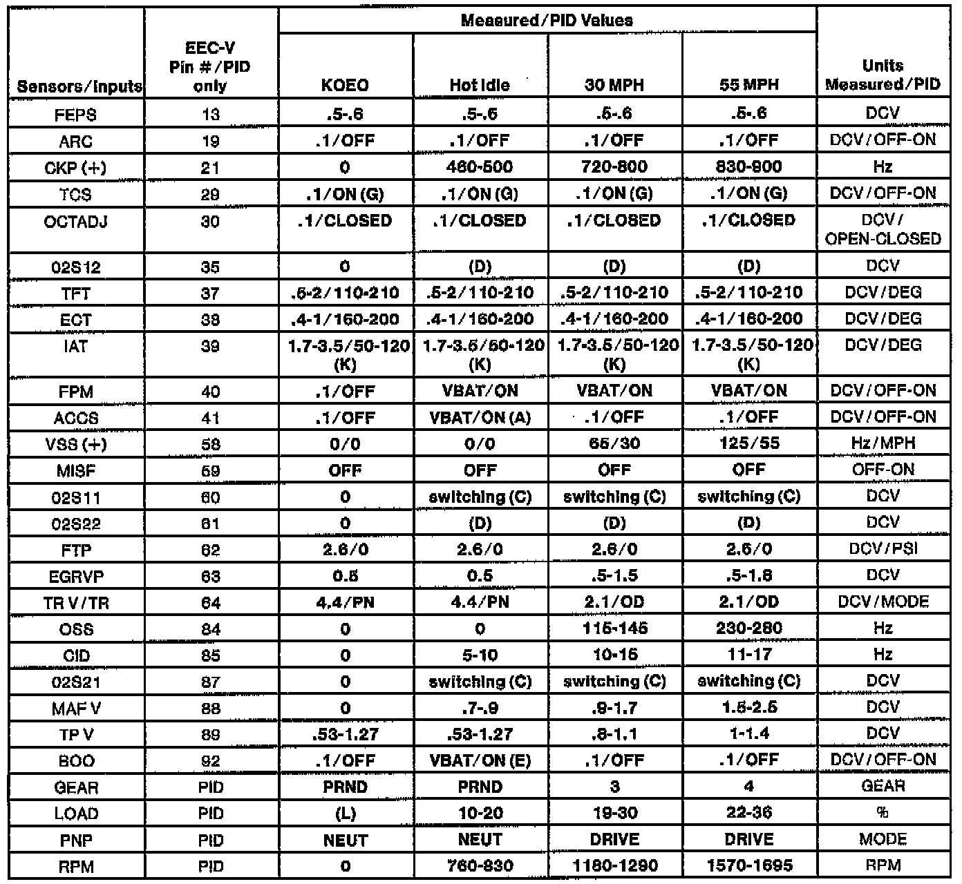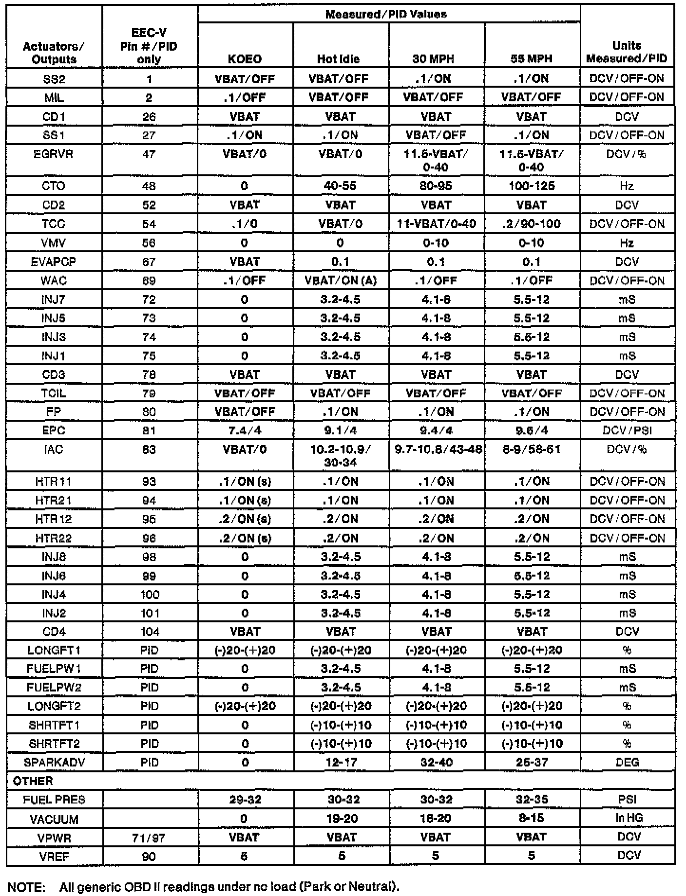Home >> Ford >> 1996 >> Explorer 2WD V8-302 5.0L >> Repair and Diagnosis >> Powertrain Management >> Computers and Control Systems >> Testing and Inspection >> Scan Tool Testing and Procedures >> Normal Scan Data Values - Includes Pids