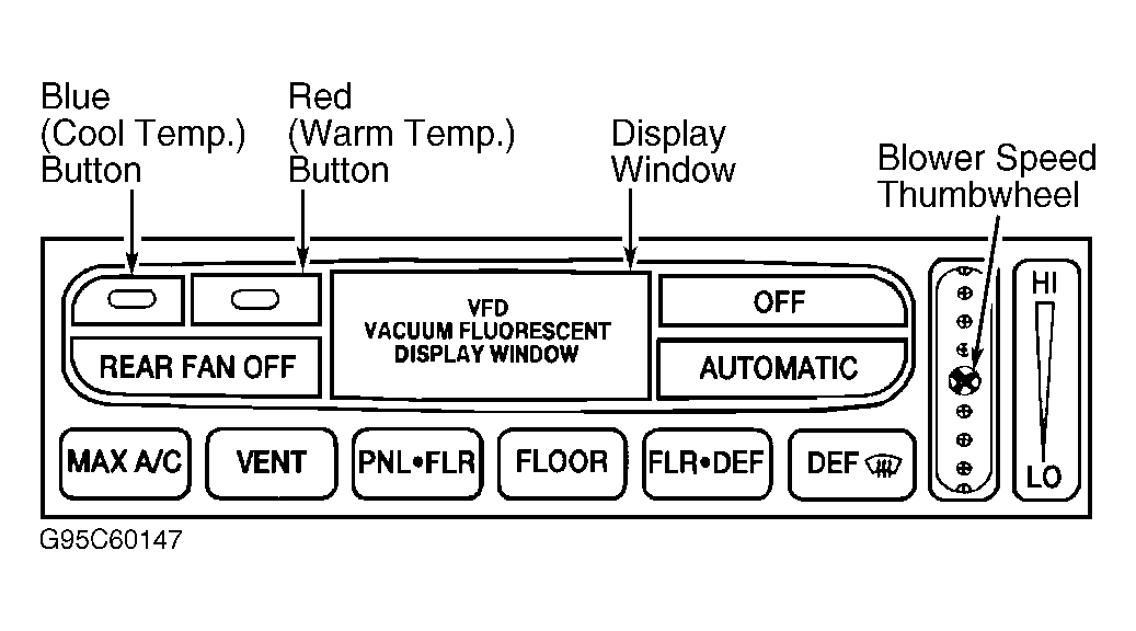 EATC system can be operated in full automatic mode by pressing AUTOMATIC button, or system can be manually operated by selecting one of following mode control (manual override) buttons: MAX A/C, VENT, PNL-FLR, FLOOR, FLR-DEF and DEF. See Figure.