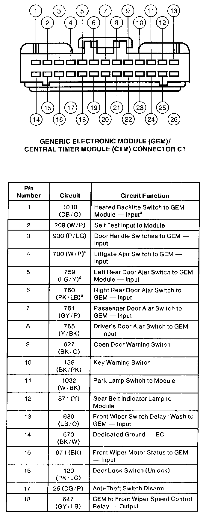 Home >> Ford >> 1996 >> Explorer 4WD V8-302 5.0L >> Repair and Diagnosis >> Diagrams >> Connector Views >> General Module >> Generic Electronic Module/Central Timer Module