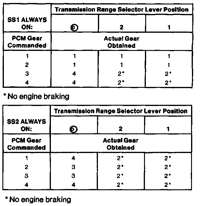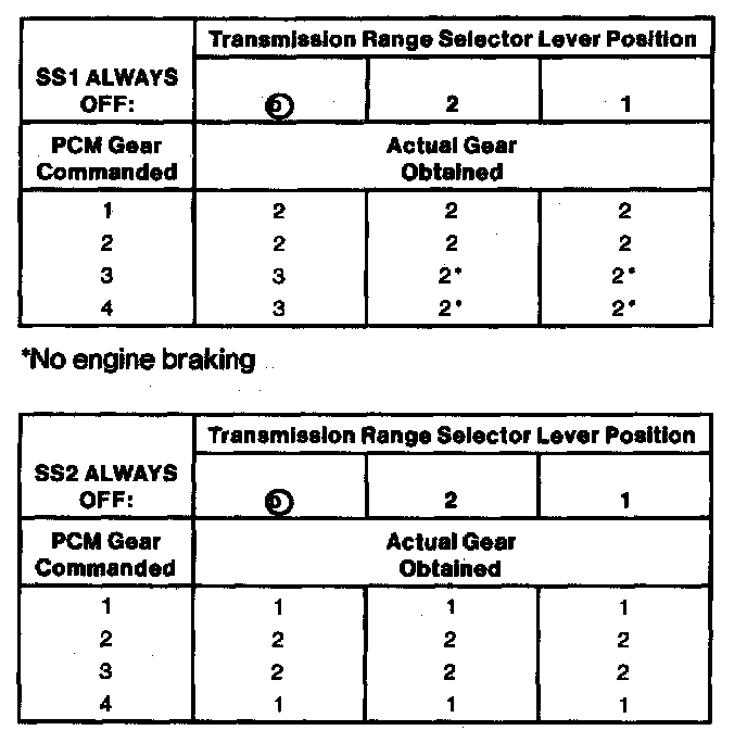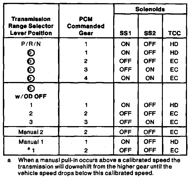 Shift Solenoid Operation Chart