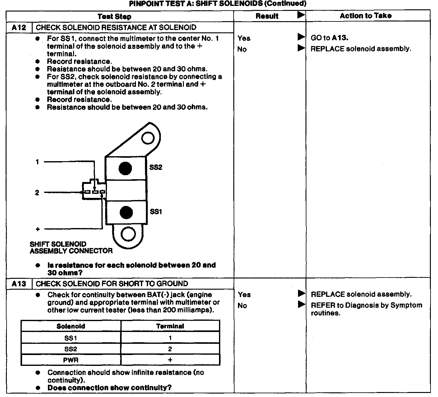 NOTE:This pinpoint test is intended to diagnose the shift solenoids electrical system only. To prevent replacement of good components, be aware that the following areas may be at fault: