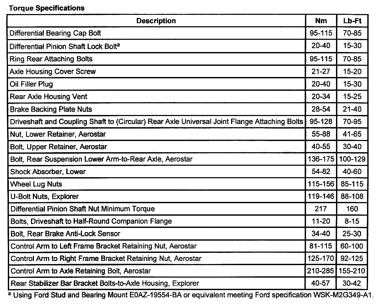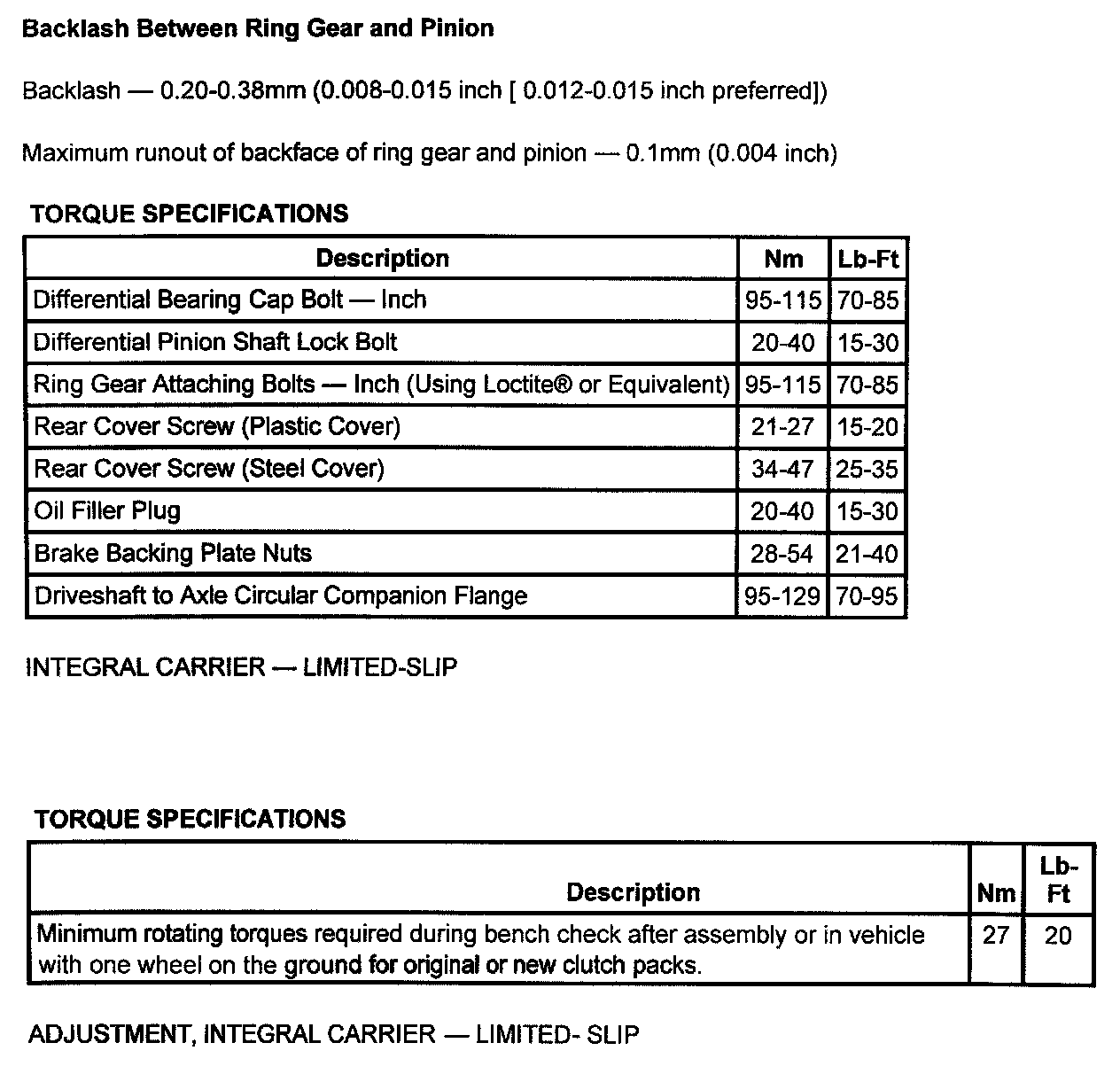 Torque Specification