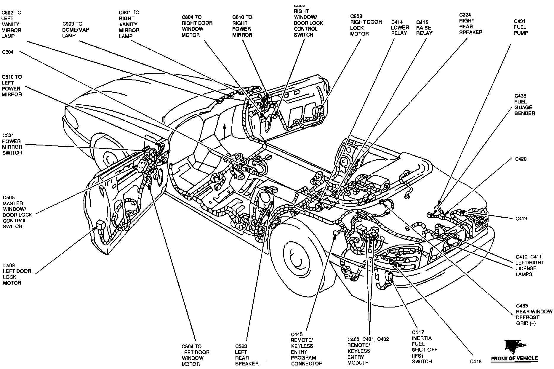 The Remote/Keyless Entry Program Connector is located at the LH rear of trunk, behind side trim.