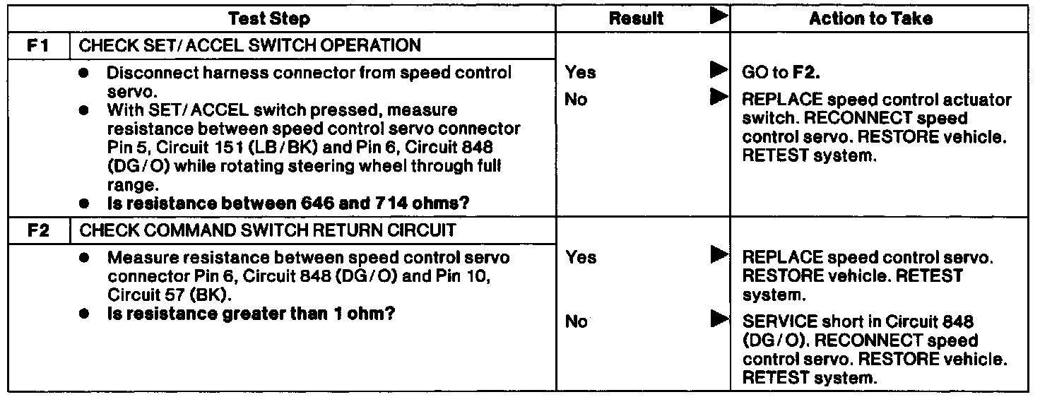 Test F: Set/Accel Switch Inoperative.: