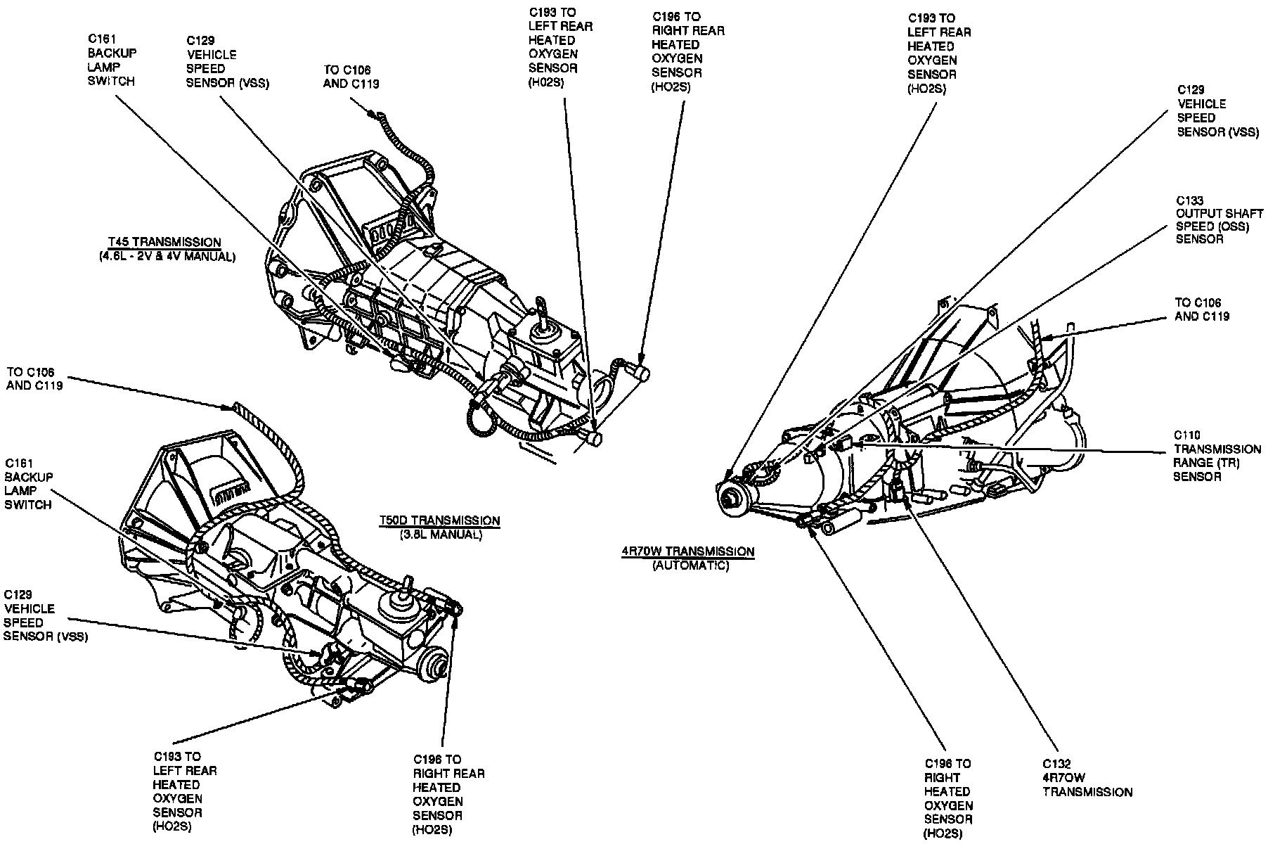 The Transmission Range Sensor is located at rear LH side of transmission.
