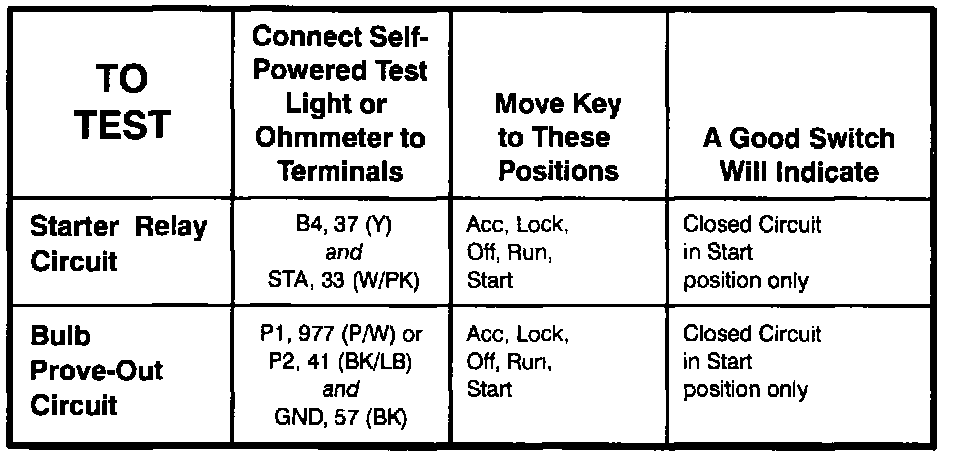 Ignition Switch-Component Testing Procedure (Part 2 Of 2):
