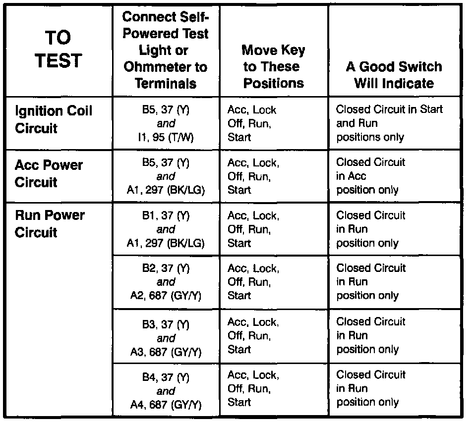 Ignition Switch-Component Testing Procedure (Part 1 Of 2):